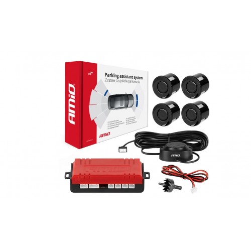 Aizmugures atpakaļgaitas skaņas signalizators (parktronic) komplektā ar 4 sensoriem melns AMIO-01567