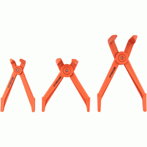 - The design of the clamp jaws allows the flexible hose to be clamped securely without damaging it.