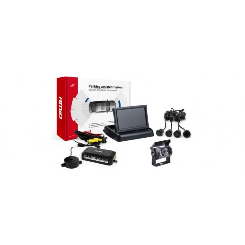 TFT02 4.3" Парктроник Комплект с HD-501-IR камерой 4 датчика черный "GOLD" AMIO-02703