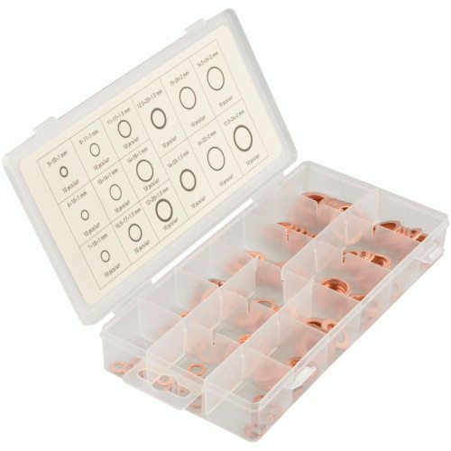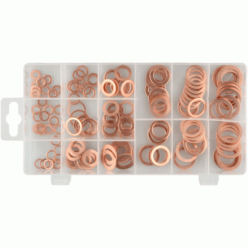 - Набор медных шайб применяется для качественного уплотнения соединений в различных системах автомобиля.