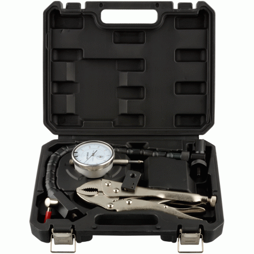 • Набор укомплектован индикатором с точностью до 0.01 мм и диапазоном 10 мм, гибким кронштейном с винтовым фиксатором длиной 350 мм, плоскогубцами с фиксатором.