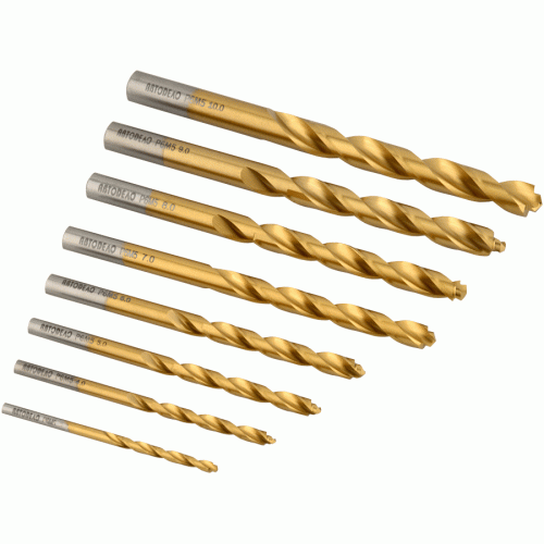 - Свёрла имеют покрытие из нитрида титана (NiTi), закалены до твёрдости 63-66 HRC и снабжены цилиндрическим хвостовиком.