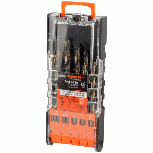 - Набор состоит из тринадцати свёрл спиральных с цилиндрическим хвостовиком, легированных кобальтом.