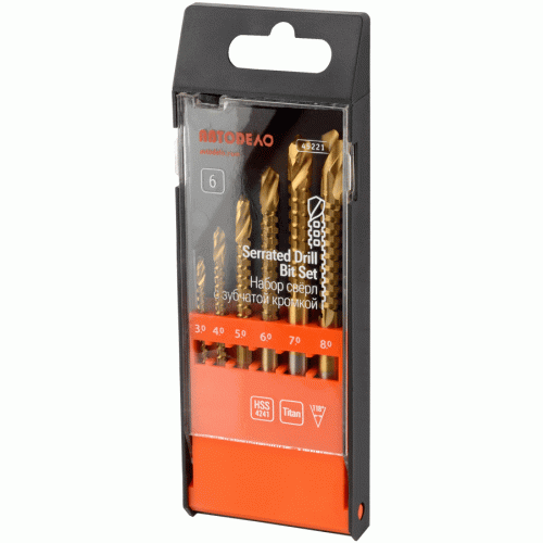 - Набор состоит из шести свёрл спиральных с цилиндрическим хвостовиком.