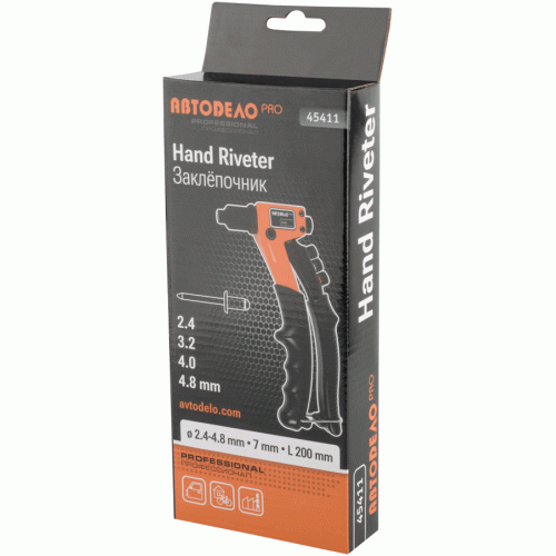 - Рабочий размер применяемых заклёпок: стальные - 2,4; 3,2; 4,0 мм; алюминиевые - 2,4; 3,2; 4,0; 4,8 мм.